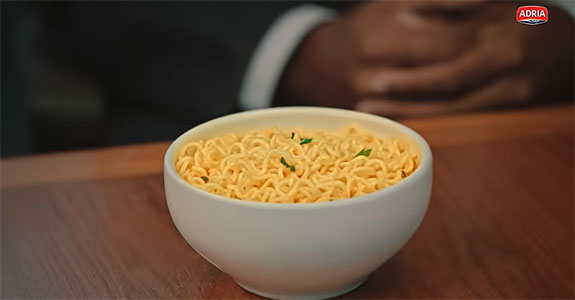Para mostrar que o consumo de macarrão instantâneo pode ser um pouco mais saudável, a Adria fez um investimento em mídia para mostrar ao público sua linha de lámen sem fritura.