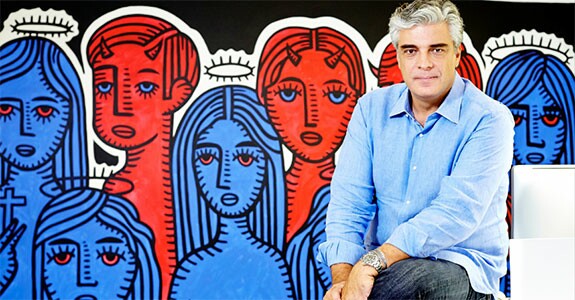 “Por muitos anos ouvi de amigos e até de familiares que deveria expor minhas pinturas, mas rejeitei essa ideia. Já passei muitos anos provando que era um bom publicitário e não queria, também, ter de provar que era um bom pintor. Tinha um certo pudor em expor os quadros porque é uma arte muito pessoal, que reflete minhas ideias e meu inconsciente. Esse pensamento só foi mudando quando a publicitária Thaís Marin, fundadora da Art Private Gallery, viu as imagens dos quadros que postei no meu Instagram e me convidou para expor em Nova York. Pensei que seria uma oportunidade legal e que, agora, não preciso mais me preocupar a provar nada para ninguém. Quem gostar dos quadros, pode comprar. Quem não gostar, não precisa comprar. Vou continuar pintando independentemente do que achem e já deixei de me preocupar com a avaliação das pessoas.”