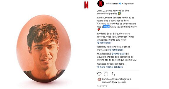 Outra marca que entrou na brincadeira foi a Netflix. Dentro da imagem de um ovo, a empresa colocou a foto do ator Noah Centineo, que já atuou nos filmes exclusivos do serviço de streaming “Para Todos Os Garotos que Já Amei” e “Sierra Burgess É uma Loser”. Ao que tudo indica, a ideia é promover o novo filme “The Perfect Date”, ainda sem data de estreia.