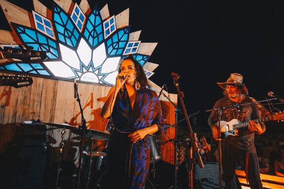 Ceu e Donavon Frankenreiter na gravação do clipe (Crédito: Divulgação)