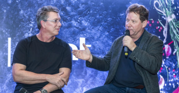 Boninho (à esq.) e o chef Claude Troisgros falam sobre o novo reality (Crédito: Fabio Rocha/Divulgação)