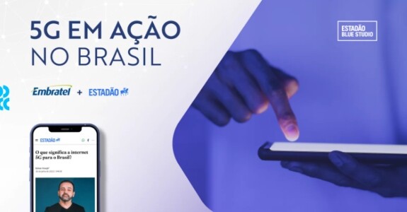 Case do Estadão Blue Studio junto à Embratel: cobertura editorial aliada a conteúdo jornalístico branded para acompanhar a chegada do 5G (Crédito: Reprodução/Estadão Blue Studio)
