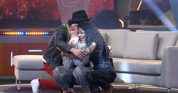 Juliette Freire, a campeã do BBB21, é abraçada pelos finalistas Camilla de Lucas e Fiuk (Crédito: GShow)