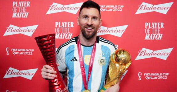 Craque da Copa do Mundo, Lionel Messi foi escolhido o “Player the Match” pela Budweiser na final da Copa (Reprodução/Twitter/Budweiser)
