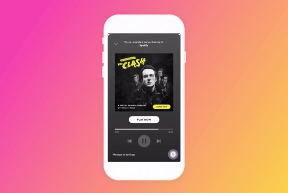 O podcast original Stay Free: The Story of the Clash, criado pela plataforma de streaming em parceria com a BBC, é o primeiro a receber o novo recurso, que irá funcionar apenas se o usuário ativar o microfone do dispositivo. Uma campanha de Axe, marca da Unilever, está em fase de testes e irá encorajar o público a falar alguma frase específica durante a transmissão da peça publicitária. Se o ouvinte disser “Dê o play” em resposta ao comercial de áudio, o Spotify irá tocar uma playlist específica com curadoria da marca.Por enquanto, os anúncios de comando de voz serão disponibilizados nos EUA para um grupo de pessoas que utiliza a versão gratuita do Spotify e somente aqueles que já ativaram os controles de voz do app. Os usuários podem ativar ou desativar os anúncios de voz no menu de configuração do serviço ou, ainda, desativar o acesso ao microfone nos ajustes do aplicativo no smartphone.