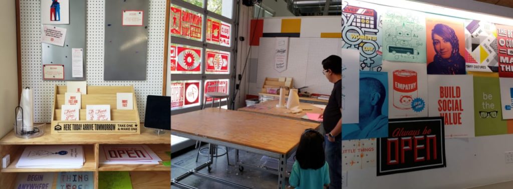 O campus conta com uma oficina de design, com um time específico que produz cartazes e materiais personalizados para eventos da empresa. Os funcionários de outras áreas, por sua vez, podem fazer aulas de caligrafia e composição de imagens no espaço, como um hobby. Muitos dos cartazes espalhados pela sede foram realizados pelos colaboradores durante essas oficinas.