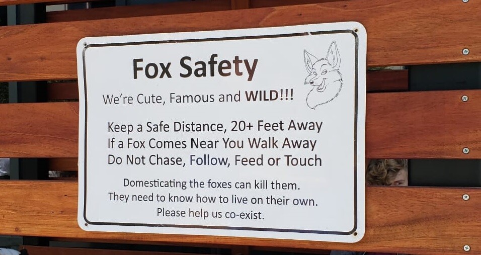 Uma das placas do campus: “Somos fofas, famosas e selvagens”, diz o letreiro sobre as raposas que habitam a área externa do Facebook