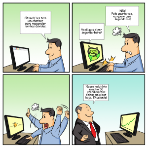 Peguemos como exemplo a implantação de um atendimento automático. A empresa adiciona uma solução de bot para responder aos seus clientes através da internet. Os clientes começam a entrar e fazer perguntas, mas a solução tem uma quantidade muito pequena de respostas e não consegue responder a maioria dos pedidos ou então dá respostas que não têm nenhuma relação com a pergunta.