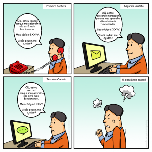 Outra situação associada à tecnologia e atendimento é quando a empresa opta pela disponibilização de vários canais, mas os implementam de forma independente. Um exemplo real: você envia um e-mail, recebe uma resposta. Não satisfeito, você entra no chat, no meio da conversa percebe que aquele atendente não vai te ajudar e decide ligar para a empresa. Em cada um desses contatos, você teve que explicar o problema inteiro. Adicionalmente, teve ainda que explicar o que os outros atendentes responderam.