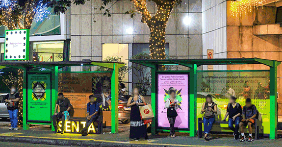 O Spotify customizou sequencial de abrigos de ônibus no Rio de Janeiro com adesivação, luminosos, faces estáticas e mobiliário urbano, com o objetivo de divulgar músicas e artistas da plataforma que abordaram as variações do termo “sentada”, destaque na busca por músicas no streaming.
