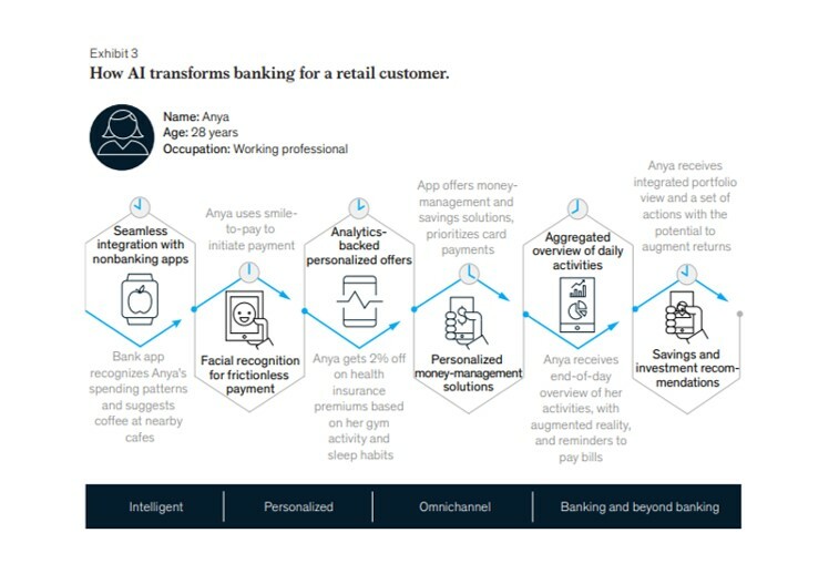 No fantástico estudo da McKinsey que você pode ver no link abaixo, constatamos que toda a cadeia na qual um banco pode estar inserido terá embedado camadas e mais camadas de AI.