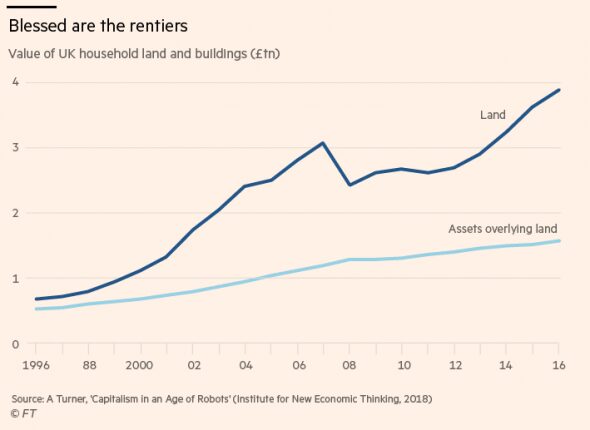 That is not all. Lord Turner also suggests other reasons for rising inequality and low average productivity growth. The first is the growth of “zero (or near zero)-sum” activities, some of which are not measured in economic output and few of which contribute to social wellbeing: think lobbyists, flash-traders or tax lawyers. Even education has a strongly zero-sum character: it is a positional good. Moreover, such zero-sum activities are well paid and so extract a great deal of rent. Successful creators of digital near monopolies also enjoy a great deal of rent. So, not least, do owners of property in prosperous conurbations. The new economy then is the rentier’s paradise.