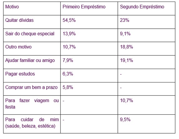 Chama a atenção que o principal motivo do primeiro e segundo empréstimos é o mesmo: pagar dívidas atrasadas. Entretanto, o índice dos que buscam essa ajuda para ficar em dia com as contas cai pela metade na segunda vez que o crédito é solicitado indo para 22,7%.”Esse indicador é um sinal que todo um trabalho de educação financeira, crédito inteligente e consciente junto aos nossos clientes está dando resultado”, afirma Eduardo Teixeira, CEO da Noverde.