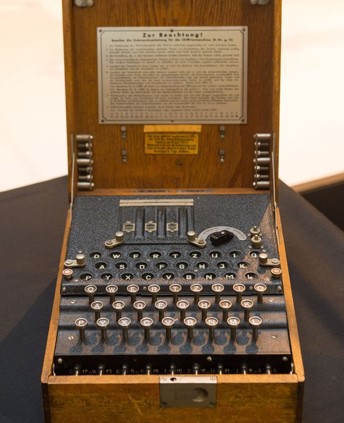 Imagem da Máquina Enigma, usado pelos nazistas durante a 2a Guerra Mundial para transmitir mensagens criptografadas. Fonte: Universidade de Calgary