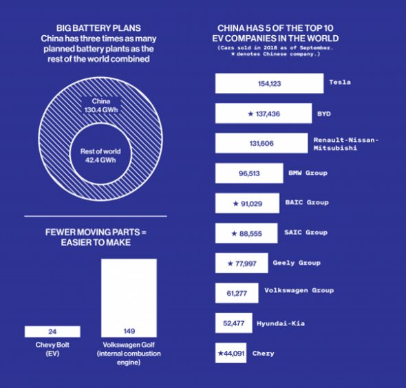 Na Guerra Fria do Século XXI, o foco do país não está apenas na internet e em telecomunicações. Os orientais vêm conquistando notoriedade também em outras áreas no mercado de tecnologia. No setor automotivo, o plano é que 70% da produção local seja de veículos híbridos e elétricos até 2025 e atualmente já há mais de 200 mil pontos públicos de recarga espalhados pelo País, tornando o país o líder mundial em carros elétricos.