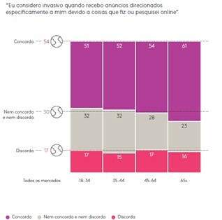 Além disso, às vezes, essa “experiência irritante” se manifesta como um mau uso de redirecionamento, como enviar mensagens a pessoas que já compraram o produto (algo que 56% dos consumidores conectados afirmam já ter acontecido). Os dados podem, e devem, ser aliados de uma ótima publicidade, mas eles devem ser coletados e usados com responsabilidade. Ignorar as preocupações e a recusa do consumidor pode ter repercussões muito negativas.