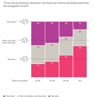 A linha entre a segmentação online que gera boas oportunidades e a que, muitas vezes, representa uma “invasão”, é tênue. A relevância do conteúdo é a palavra da vez e pode ser considerada um divisor de águas nesse assunto. Entre os consumidores conectados entrevistados nos oito mercados, não há uma maioria esmagadora a favor ou contra a publicidade quando ela é baseada em atividades de navegação online. Mas quanto mais jovem é o consumidor conectado, mais ele é a favor da relevância.