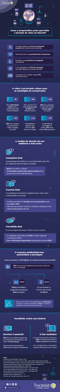 Neste infográfico da Tradelab, você vai entender como o uso da programática pode ativar seus resultados e sua verba no formato mais importante da internet hoje, que é o vídeo.