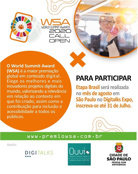 Com apoio no Brasil da Secretaria Municipal de São Paulo da Pessoa com Deficiência, o prêmio World Summit Award, considerado a maior premiação global em conteúdo digital, está com inscrições abertas.