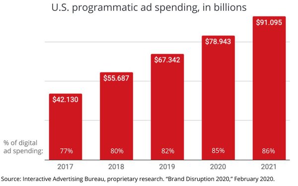 As compras de mídia programática agora representam 85% de todos os gastos com exibição digital, de acordo com o registro divulgado em um novo relatório do Interactive Advertising Bureau.