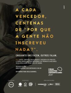 “Enquanto uns fazem, outros falam”. Este é o slogan da campanha criada pela agência Camisa 10 para o Prêmio Marketing Contemporâneo, promovido pela Associação Brasileira de Marketing & Negócios (ABMN). As inscrições para a premiação já estão abertas e podem ser feitas até o fim deste mês. Poderão concorrer peças nas seguintes categorias: comunicação integrada, marketing digital, marketing institucional, marketing promocional, lançamento e desenvolvimento de produto, marketing de relacionamento, responsabilidade social e sustentabilidade, e branded content. Os vencedores serão premiados em uma festa em dezembro, no Rio de Janeiro.