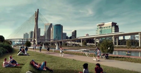 O Rio Pinheiros limpo na campanha da Chevrolet (Crédito: Reprodução)