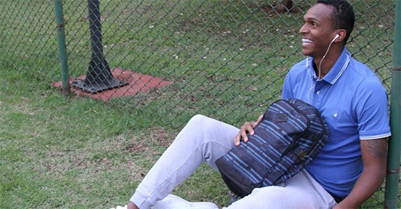 Jô promove ação para divulgar o novo modelo de mochila da Sestini (Crédito: Divulgação)