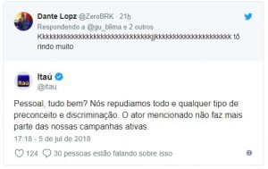 Resposta do Itaú para o questionamento de um internauta (Crédito: Reprodução)
