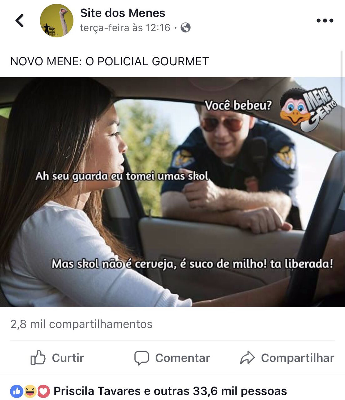 Nesta quarta-feira, 27, uma imagem da página de humor “Site dos Menes” viralizou ao comparar a cerveja Skol a “suco de milho”.