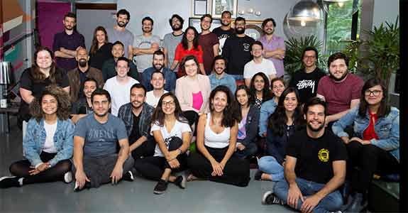 Larissa Magrisso rodeada pelas equipes de conteúdo e criação (Crédito: Divulgação)